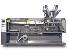 水平式包裝機技術特點: 1.運行平穩、速度快、制袋完美、耗能低。 2.充填、封合無泄露。 3.可選四邊封口或三邊封口。 4.可實現小于300ml內的大容量包裝。
